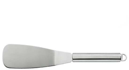 • Spatel aus Edelstahl aus der POC-Serie von Cristel. POC steht für 'petits outils de cuisine' und ist eine Serie von kleinen Küchenwerkzeugen. Er ist 27,5 cm lang und an seiner breitesten Stelle 7 cm breit.