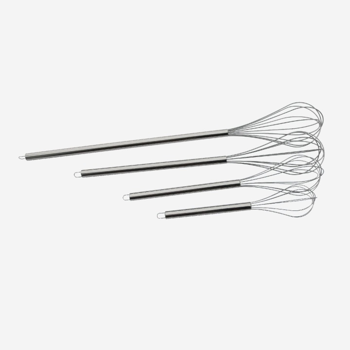 Robuste Dampfgarer-Schneebesen aus rostfreiem Stahl. Hergestellt in Sandviken. Erhältlich in den folgenden Größen: 60 cm, 70 cm, 80, 100 cm, 125 cm, 140 cm, 150 cm und 180 cm.