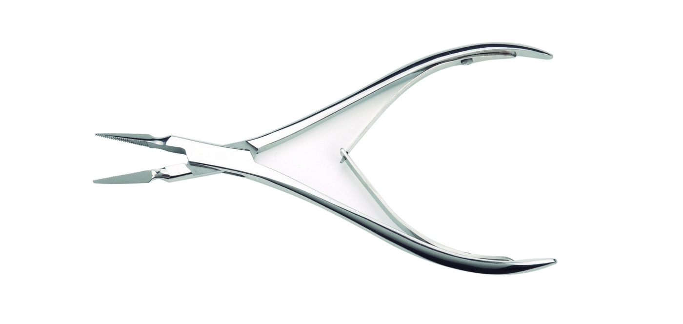 Fischgrätenzange mit einem etwas schwereren Schnitt. Zum Herausziehen dickerer Gräten oder aggressiver Stacheln aus Kinderfüßen. 15cm.