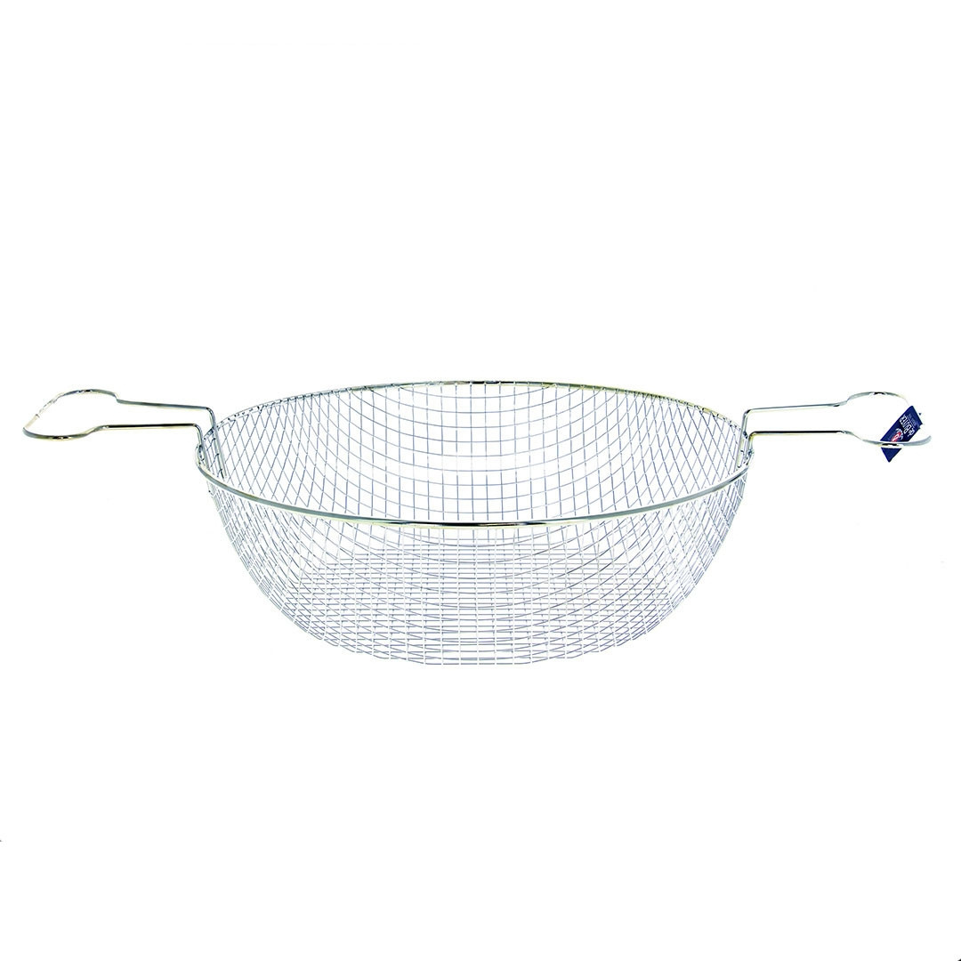 Frittierkorb, der in eine 28-cm-Pfanne passt. Wird als Einsatz beim Frittieren verwendet und der gesamte Korb kann in das kochende Öl gesenkt werden. Hergestellt aus rostfreiem Stahl. Von Hand waschbar.