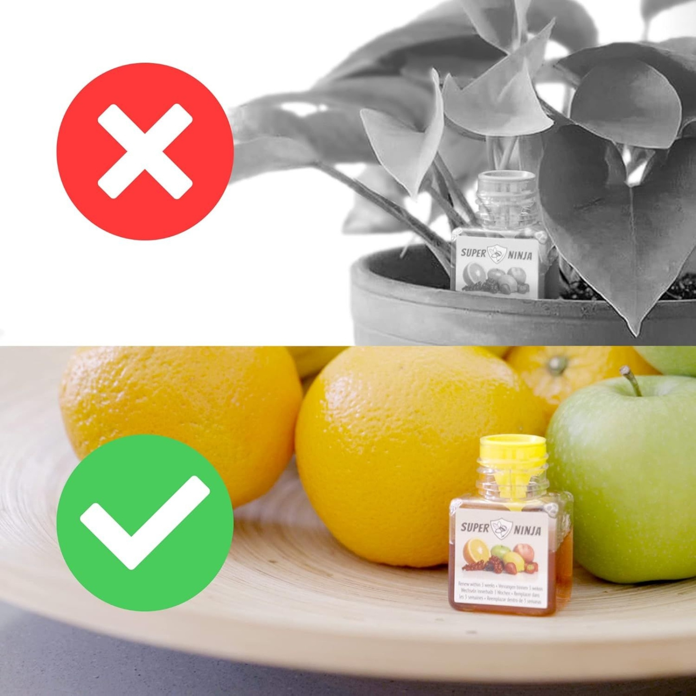 Unglaublich wirksame Fruchtfliegenfalle, die in der Küche aufgestellt wird, wo die Fruchtfliegen am lästigsten sind. Die Fliegen krabbeln bald in die Flasche und begeben sich in ihre bevorzugten Jagdgründe. Erhältlich in verschiedenen Packungsgrößen.