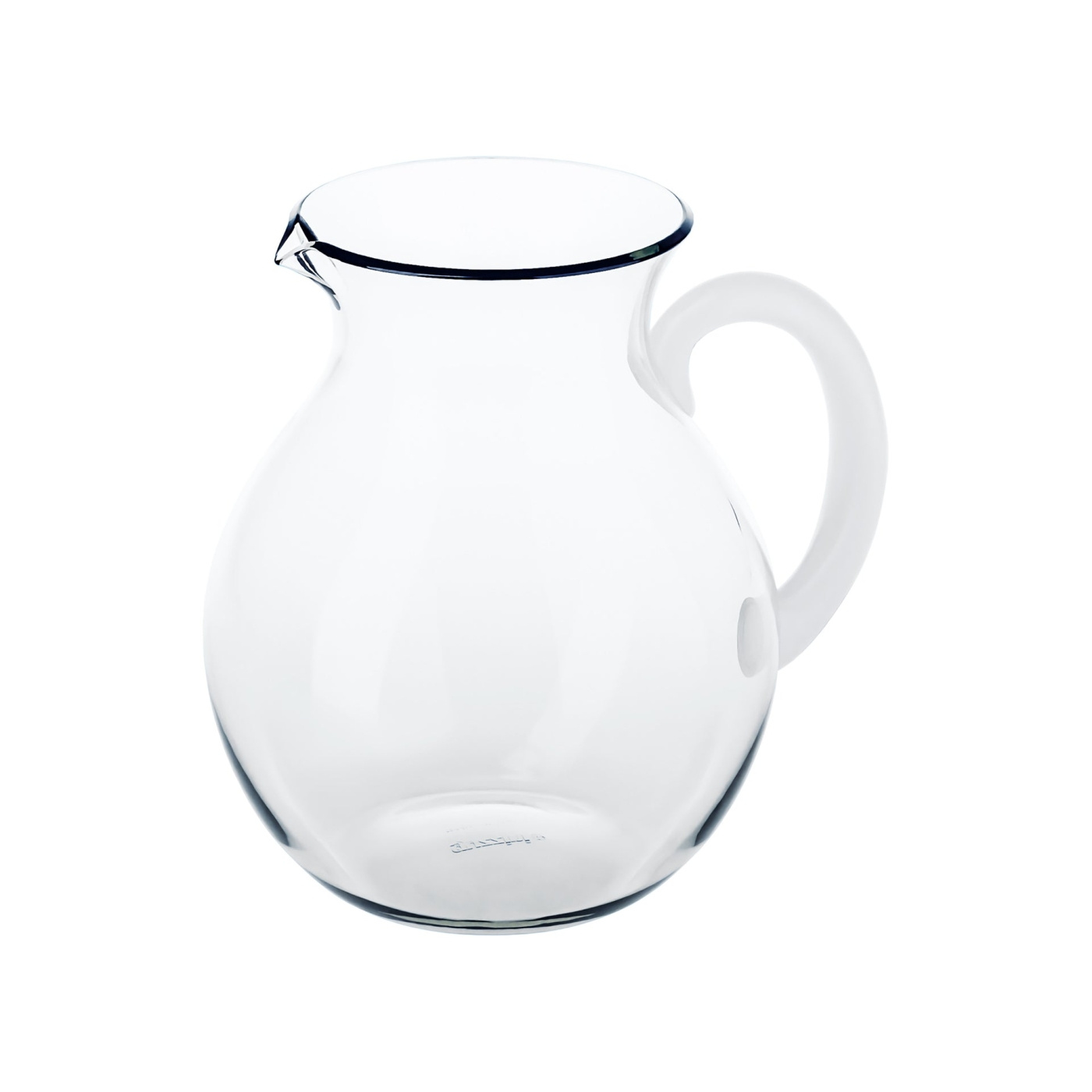 Die Kanne verfügt über einen stabilen ergonomischen Griff und eine deutliche Ausgusstülle, die ein sauberes Ausgießen ohne Kleckern ermöglicht. Die runde Form sorgt sowohl für eine gute Balance als auch für einen spielerischen Ausdruck auf dem Tisch, während die breite Öffnung das Befüllen mit Eis, Zitrone oder Beeren erleichtert.