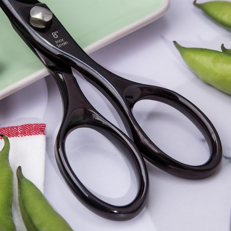 Natürlich eignet sich die Schere auch für viele andere Zwecke, sowohl gastronomische als auch allgemeine. Eine perfekte Wahl zum Schneiden von Hefezöpfen, aber ebenso geeignet, um Bilder aus einem Katalog für eine Collage auszuschneiden.