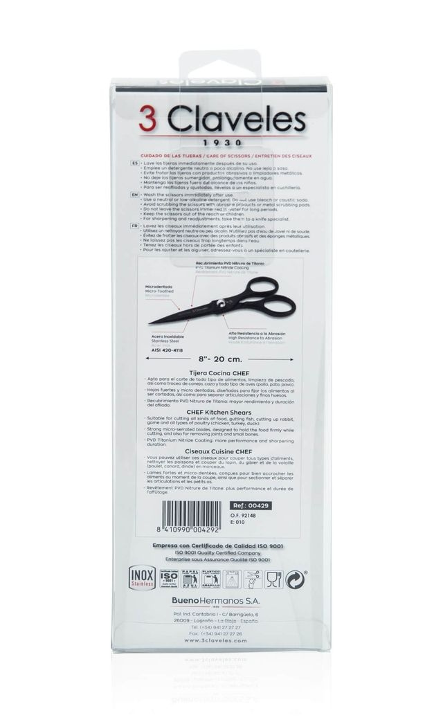 Küchenschere 20 cm, Chef, schwarz - 3 Claveles