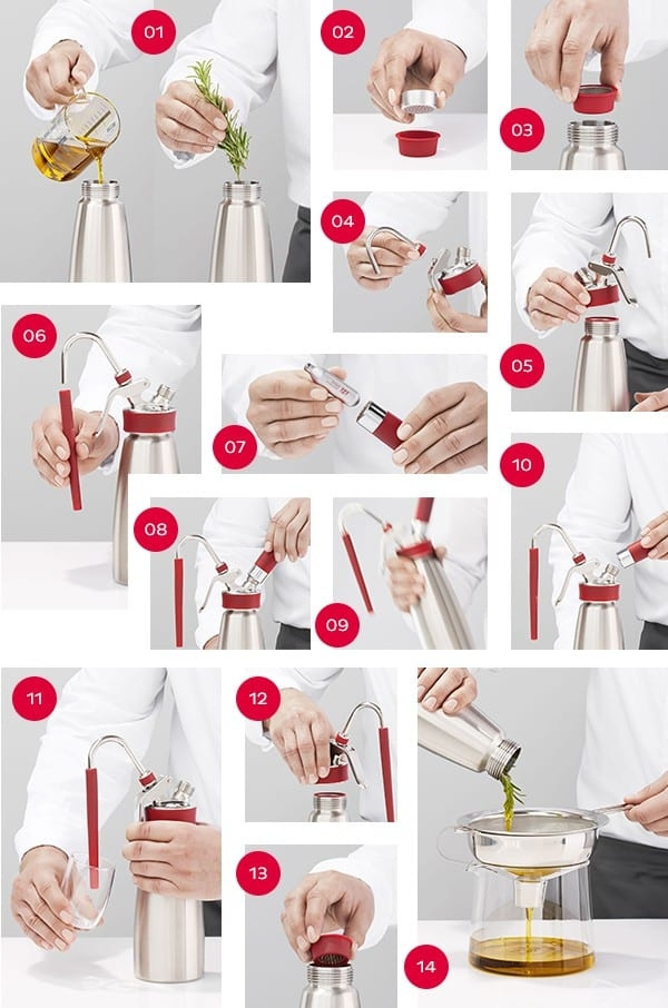Dieses Rapid Infusion Kit ermöglicht eine schnelle Infusion mit einem iSi-Siphon. Es enthält ein Sieb, das verhindert, dass kleine Partikel in die Düse gelangen und diese verstopfen. Zweitens erhalten Sie eine Düse, die den unvermeidlichen Sprühnebel in jedes beliebige Gefäß leitet. Das macht den ganzen Prozess sicherer und weniger chaotisch.