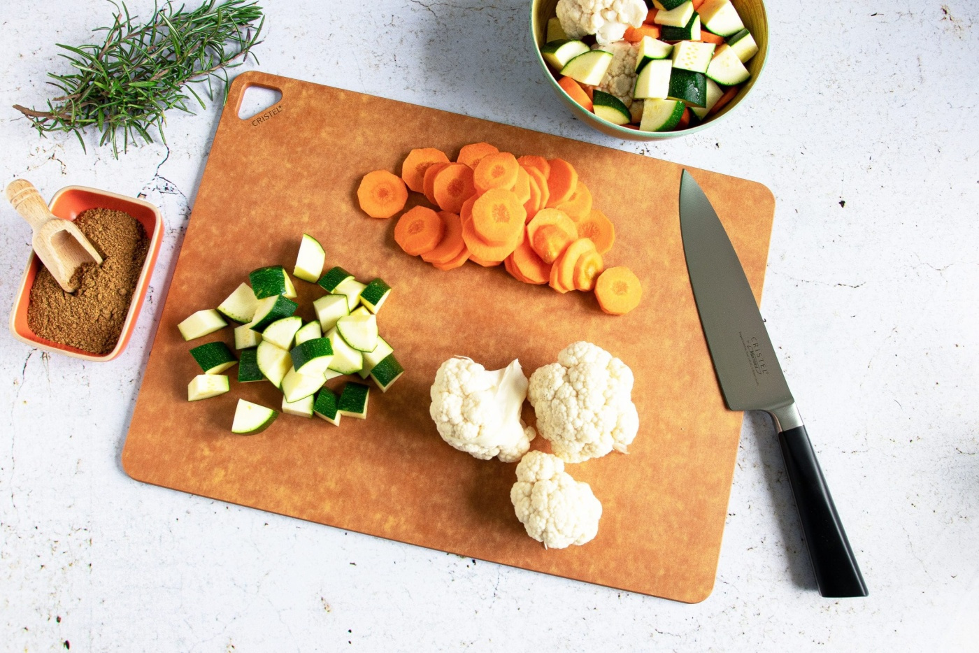 Schneidebrett von French Cristel aus hartgepressten Holzfasern, aus FSC-zertifiziertem Material.