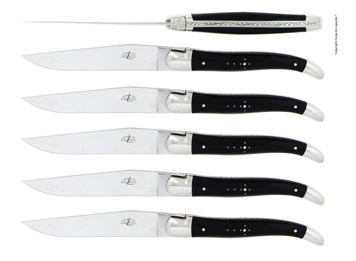 Sechs Messer, Griff aus dunklem Horn, poliert, Tradition - Forge de Laguiole
