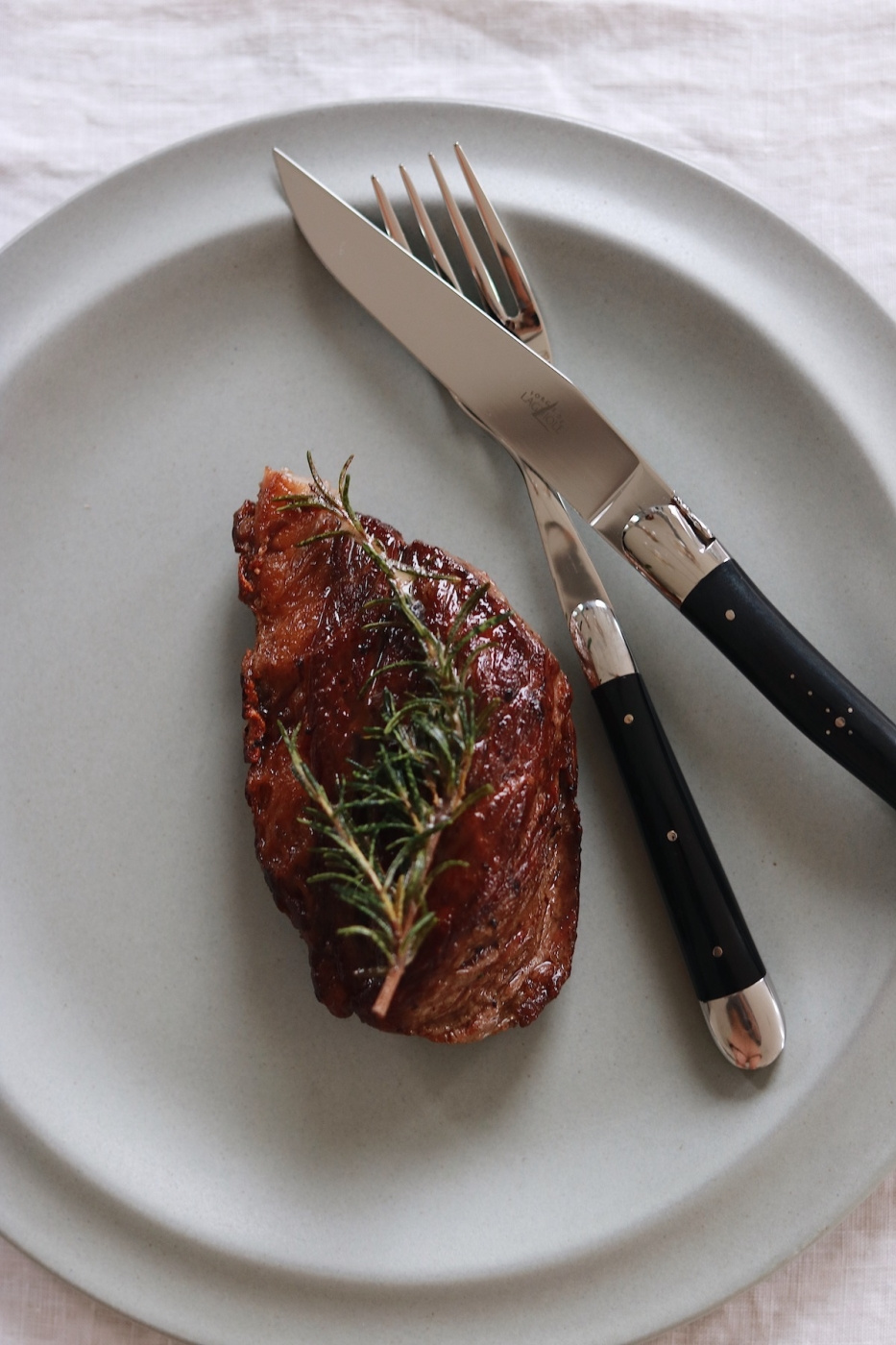 Hier wird kein Millimeter der Qualität überlassen, sondern jedes Besteck, das die kleine Manufaktur verlässt, wird bis ins Detail ausgefeilt. Die Klingen aus französischem T14-Edelstahl werden vor Ort in der Fabrik in 1000-Grad-Öfen geschmiedet. Die Holz- oder Tiergriffe werden von erfahrenen Messermachern von Hand geschliffen und poliert, und die Passform der Klinge ist himmlisch. Alles ist perfekt! Dieses Besteck wird die Krönung Ihrer Wohnung oder Ihres Restaurants sein und jedes Mal ein Vergnügen sein!