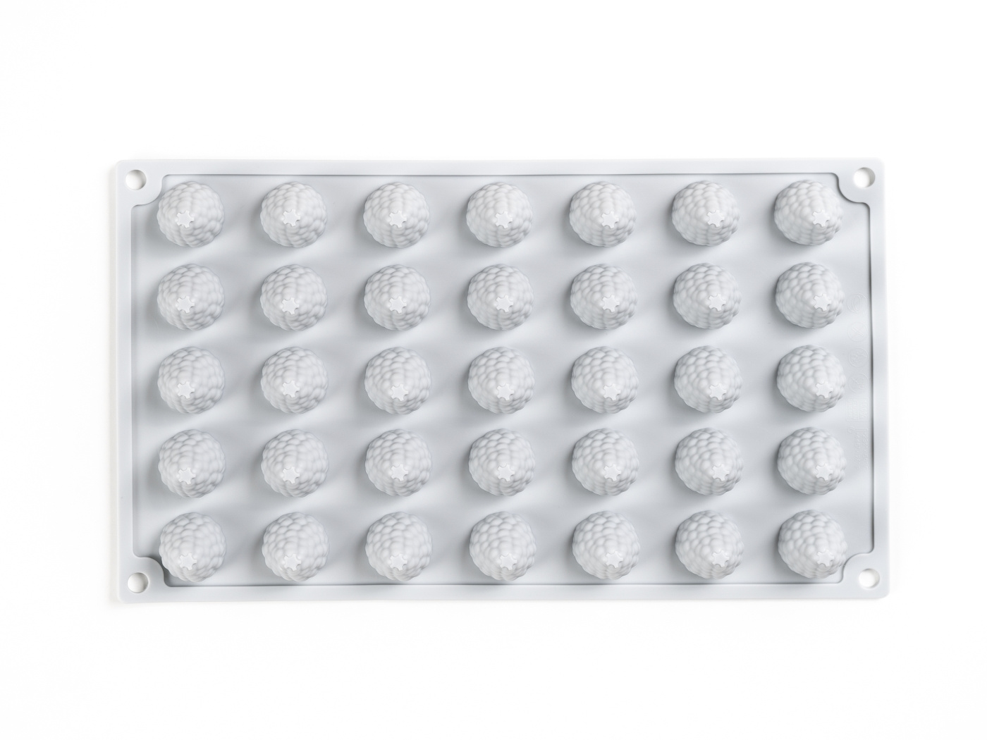 Die Form ergibt 35 Himbeeren und misst 30 x 18 x 3 cm.