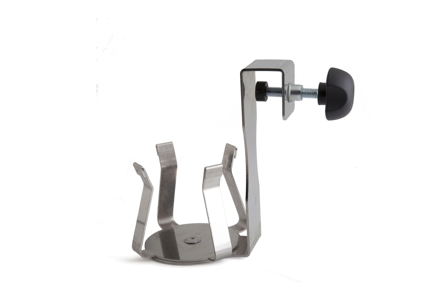 Der Halter selbst wird durch eine verstellbare Schraube gehalten. Er eignet sich für Flaschen und Siphons mit einem Durchmesser von 5 cm bis einschließlich 12 cm.