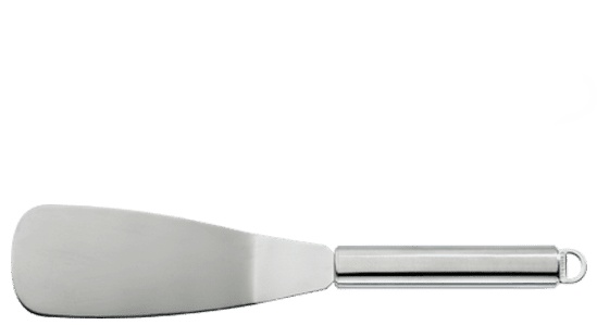 Frying spatulas, pizza spatulas, griddle spoons and crepe spatulas - you'll find all this and more under this great category. You won't get very far with just a spatula. A stainless steel one works superiorly on carbon steel and cast iron pans, whereas it would destroy your coated pan right away. With a completely flat spatula, you can get under fish and other more delicate ingredients easily - and we strongly advise against even trying to flip a pizza with a regular plastic spatula. With us you will find many types of shovels and scrapers in different designs.