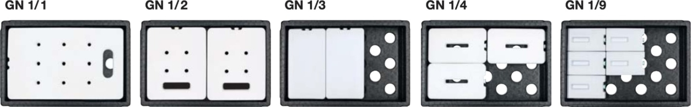 The blocks lie flat against the GN containers and use the box space efficiently. Thickness 30 mm. Available in GN 1/9, GN 1/4, GN 1/3, GN 1/2 and GN 1/1.