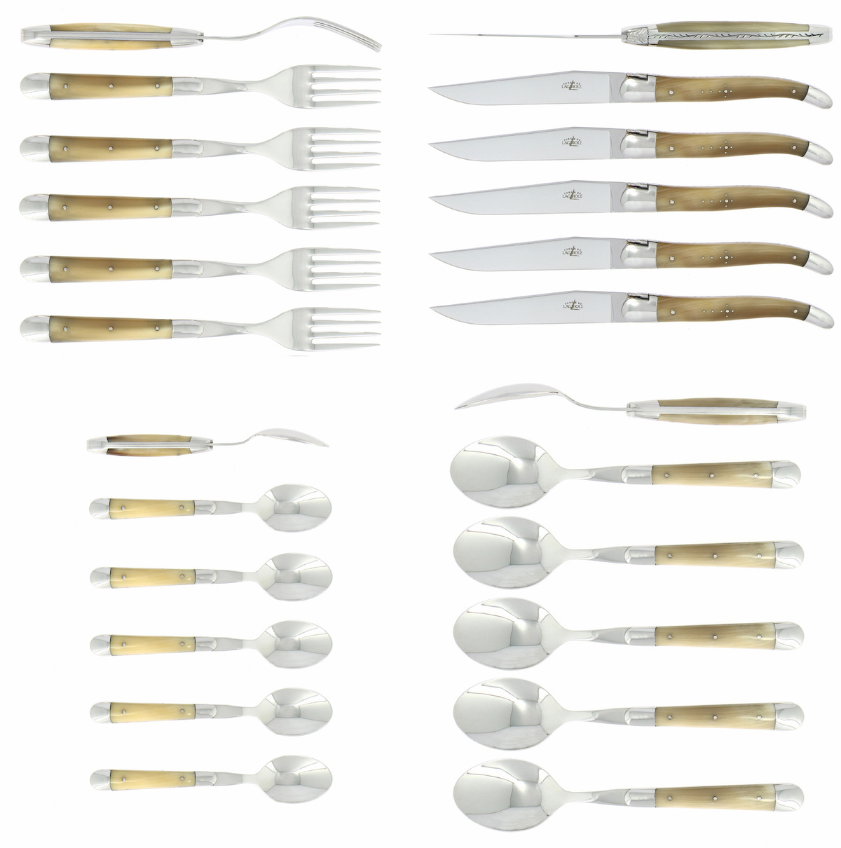 Cutlery set 03, Bright Horn handle, polished, Tradition - Forge de Laguiole
