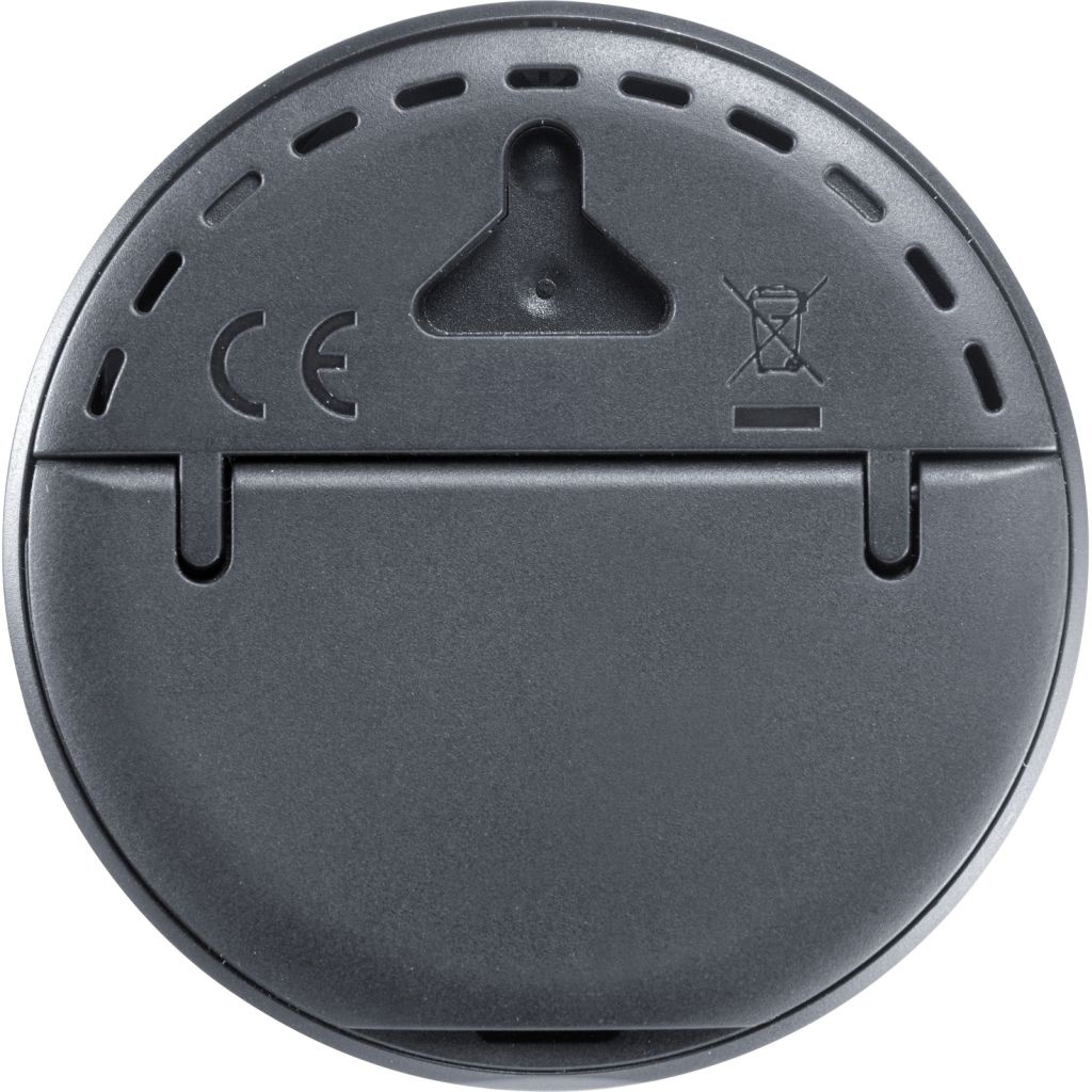 - for indoor use - quick overview of room temperature and humidity - temperature measuring range from -9.9 to +49.9°C /14.18 to 121.82 °F - humidity measuring range from 20 % to 95 % - humidity status easily recognizable by symbols - min/max. temperature and humidity information memorized for 24 hours - two mounting options: via stand or suspension - button cell 3V CR2032 included|