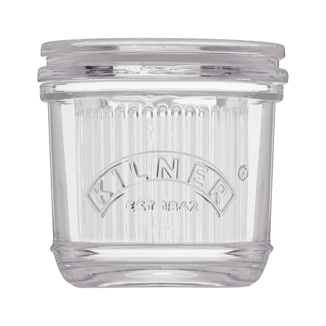 The glass butter dish from Kilner is a stylish and functional storage piece that brings a classic and timeless touch to the kitchen. The clear glass dome displays the butter elegantly and adds a sense of warmth and traditional craftsmanship. The tight-fitting dome helps preserve both flavour and aroma while keeping the butter fresh for longer. Its shape and size make it easy to place on the table or keep in the fridge, ready to use for breakfast, baking or dinner. The sturdy construction ensures it withstands everyday use without losing its charm. A butter dish from Kilner is not only a practical kitchen addition but also a detail that enhances the table setting and creates a more inviting atmosphere.
