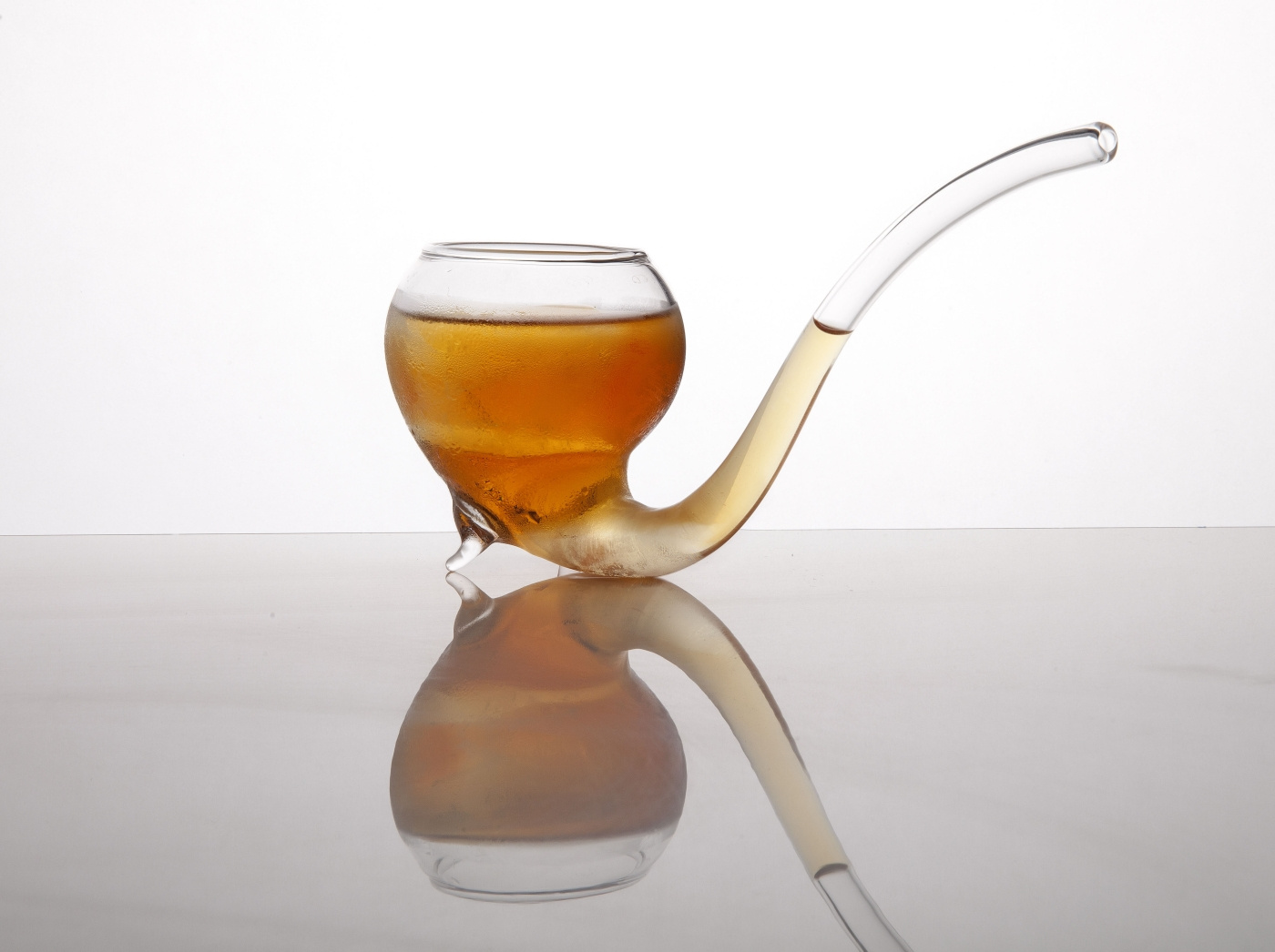 Sherlock Holmes-style glass pipe from 100% Chef. Made from borosilicate glass to withstand heat and cold. What better way to serve something with smoke?