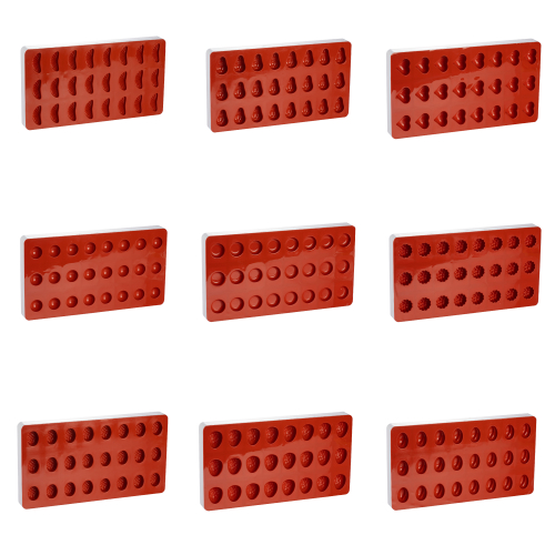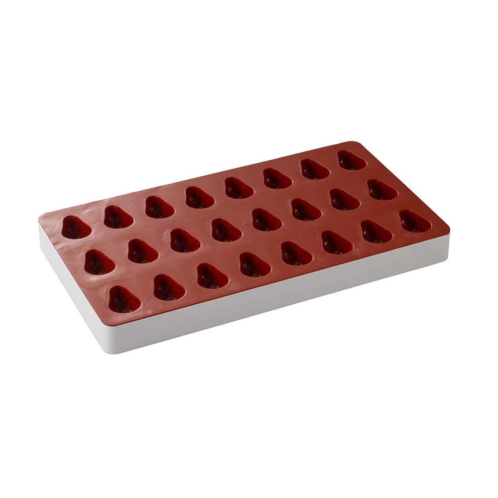 Silicone baking mould with plastic frame to mould small candies, confections or jellies (for moulding chocolates or pralines we recommend plastic praline moulds). The moulds are made of red silicone and mould a lot of small treats in the shape of fruit. Match the taste with the help of our flavor drops! The mould is 18 x 33.5 cm. Available in several designs.
