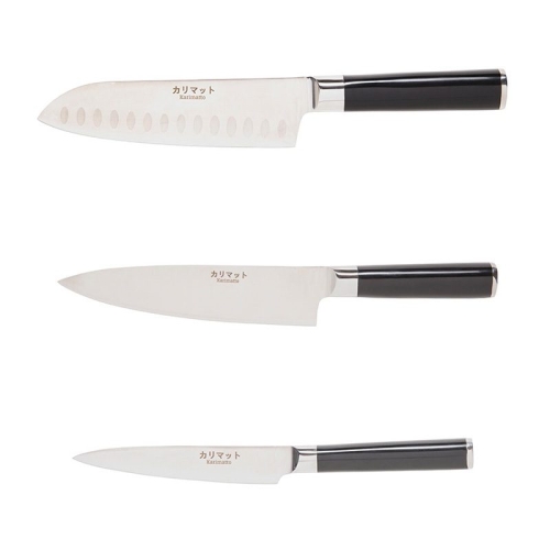Karimatto's knives have a steel combination of molybdenum and vanadium and handles made of a durable composite material.