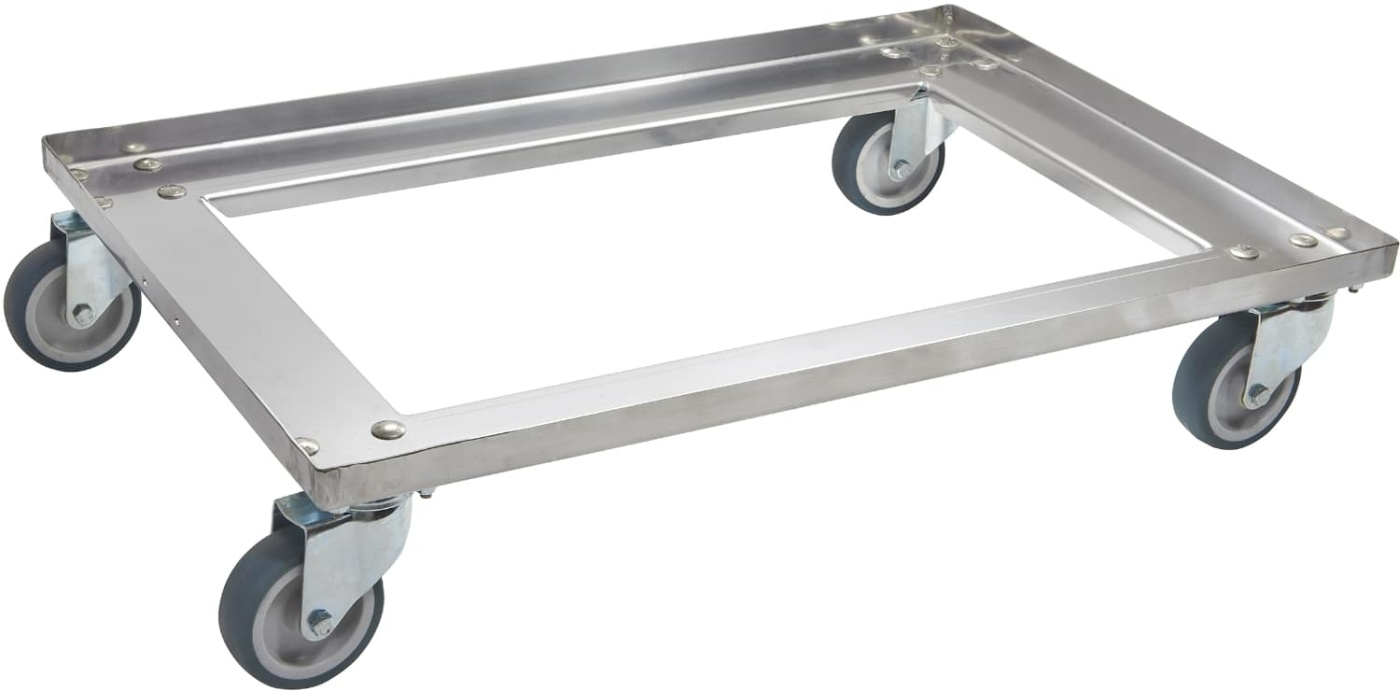 Stainless steel base frame for Schneider's TOP-BOX GN 1/1 transport boxes. Base dimensions 400x600 mm, the same as the box. With the trolley under the box the whole system becomes mobile, taking the strain off staff when transporting across kitchen and catering floors. Load capacity 300 kg. One of the wheels has a lock to fix the box in place during loading and unloading.