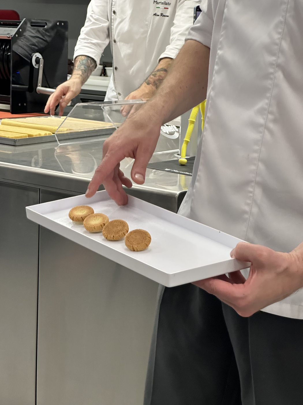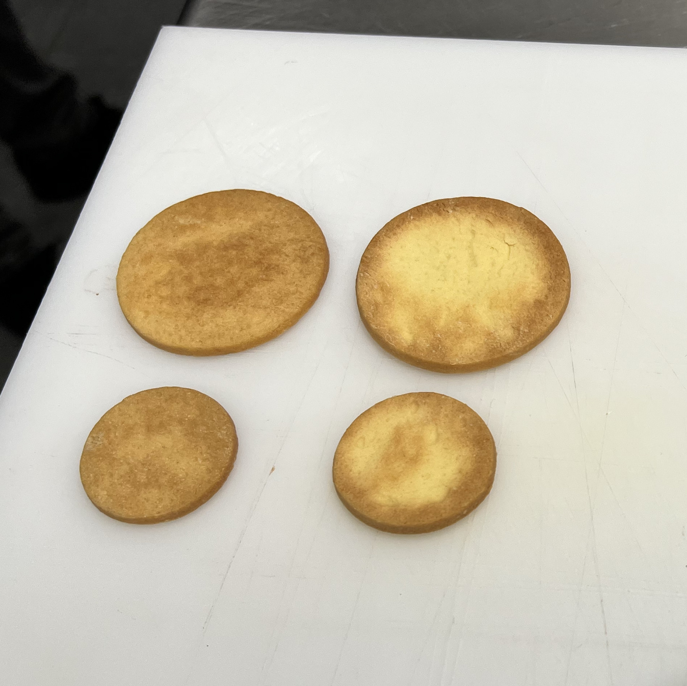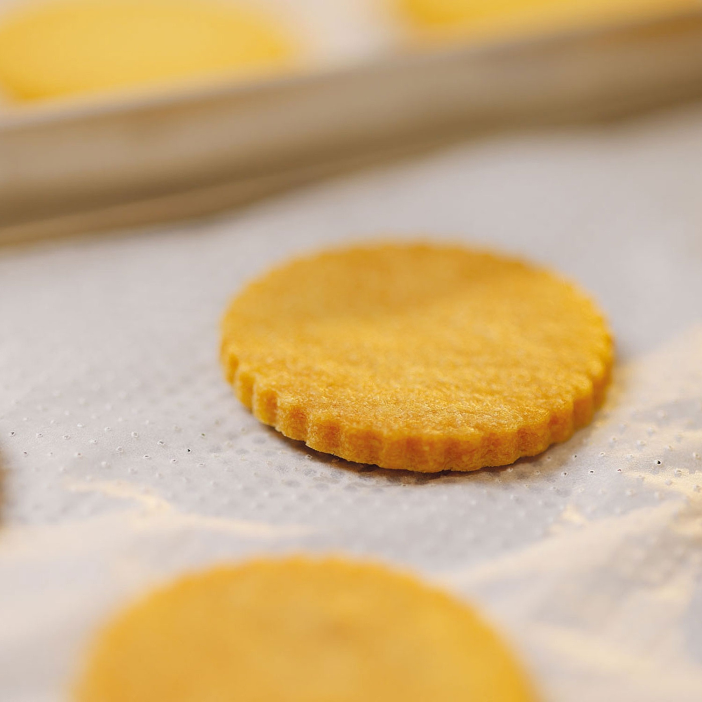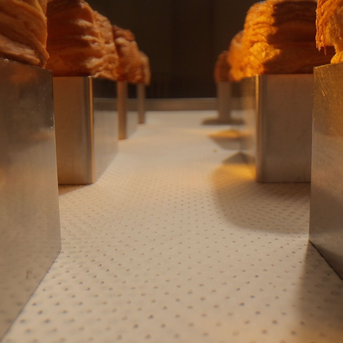 Micropaper is a baking paper that revolutionizes your baking! Thanks to the micro-perforation, the airflow both above and below your baked goods becomes incredibly even. The micro-perforation also allows the liquid that the baked goods release during cancellation to move away rather than staying put and logging to it. Even when you want to bake on a loose sheet rather than a perforated sheet, perforated paper makes your baked goods so much better! The cooking time is reduced and the evenness of the bake is increased. During a visit to Martellato's factory, we have witnessed how cakes, sponge cakes and croissants baked at the same time on the same tray with different papers achieve completely different results (see pictures). Note that what is baked on micropaper becomes completely smooth and even, while what is baked on regular paper gets the small light rise in the middle. As if that weren't enough, the cakes also cool faster on the tray after cancellation. Expect 8-10% less time and energy consumption compared to old ordinary boring paper.