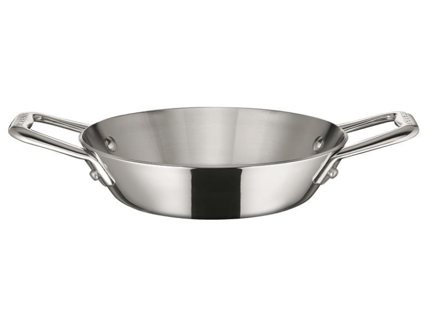 Paella pan 16 cm with two sturdy handles. Nice to serve from! Works on all types of hobs.