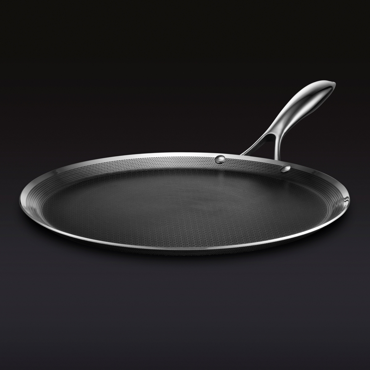 The 30 cm Hexclad Hybrid Griddle is the foundation for crispy breakfast classics, grilled vegetables or perfectly seared steaks - all on one flat, hybrid-coated griddle surface. Its low profile makes it ideal for pancakes, tortillas, sliders, bacon or eggs, but it also has the capacity for a hearty piece of meat or seafood on the grill.