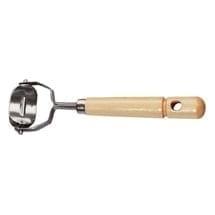 Pasta roller Small oval. Creates round pasta plates or cakes when rolled over the dough. Made of stainless steel and beech wood.