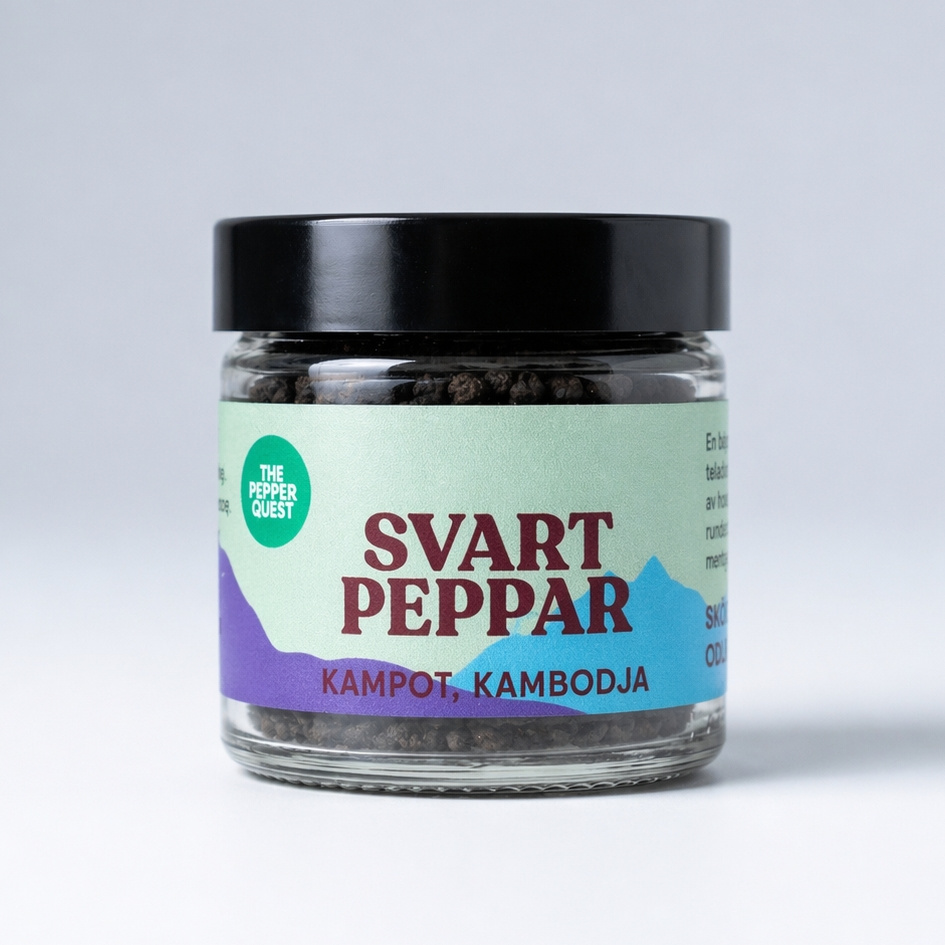 Kampot, Cambodia is one of pepper's sacred places, and their pepper is one of the very few spices in the world with a geographical indication (GI), a protection similar to that of champagne and Parma ham. There are good reasons for this. Sothy tends his farm with a precision and care that shows in the final product, and every grain in this jar is sorted by hand with tweezers. The black and red pepper come from exactly the same place, but are harvested at different times and with different results. Black Kampot is picked before full ripeness, with the skin intact, and dried in a way that concentrates the aromas beneath the surface rather than letting them evaporate with the moisture.
