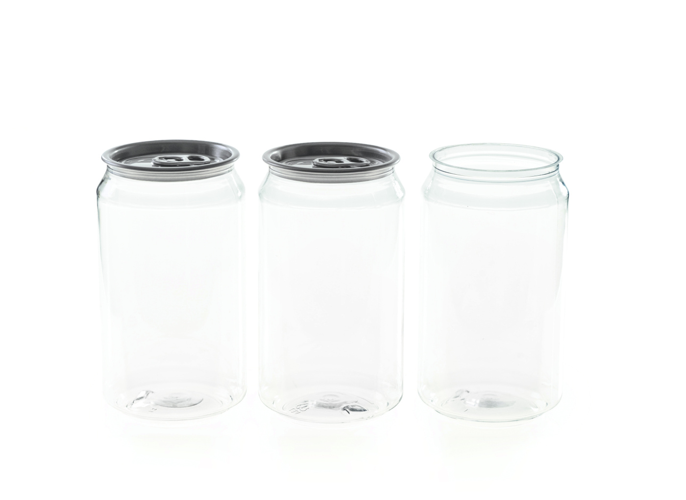 Soft drink cans for Bronson, the electric can sealer. The cans are made of transparent PET plastic which allows for some really fun stuff. Making canned cocktails in a bar, or cold drinks in a servery, or why not even sauce? The cans are available in three sizes, 25 cl, 33 cl and 50 cl, all of which of course can be closed in the Can Sealer. The top part is made of aluminum with a traditional screw cap and purchased separately (not included).
