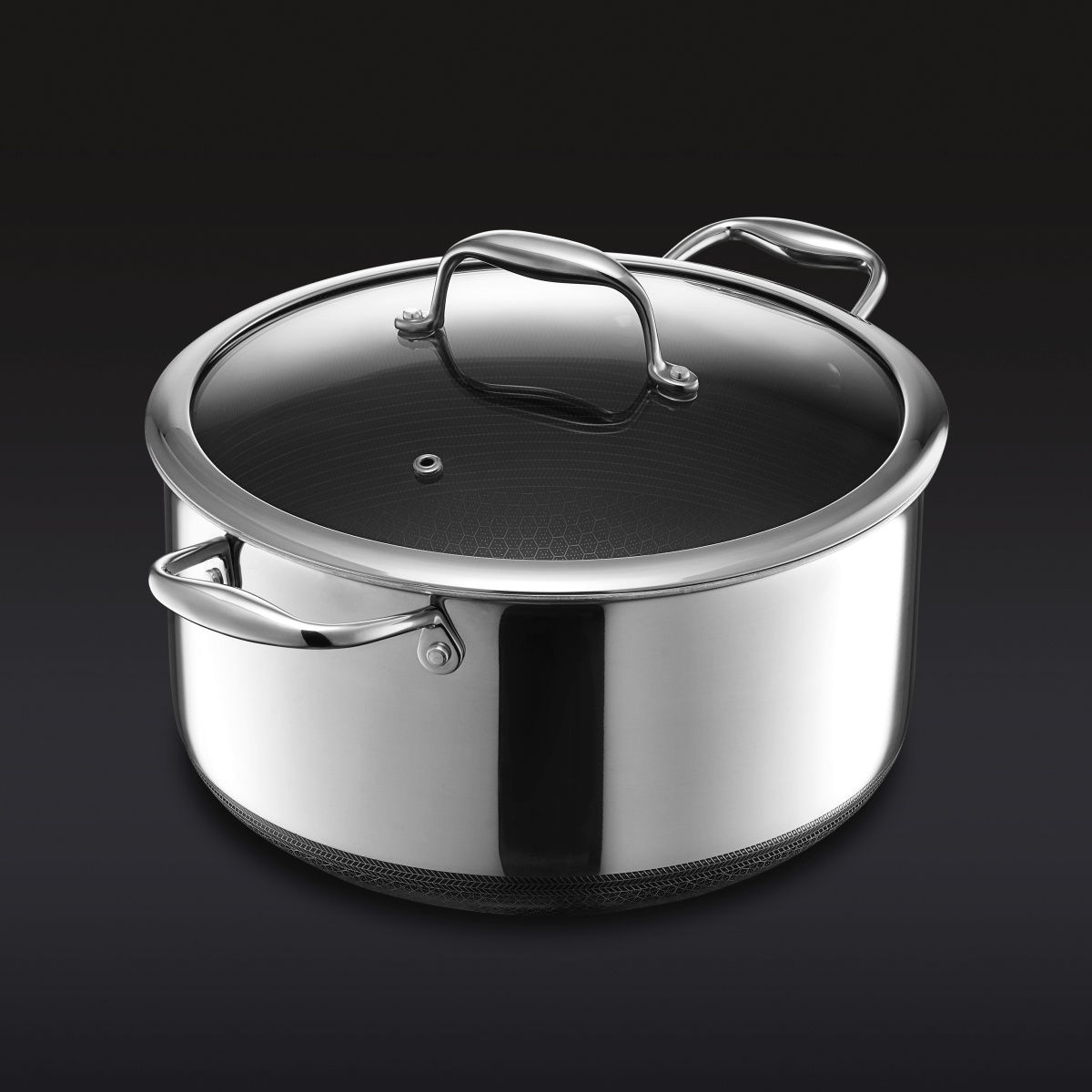 The carbon-ceramic non-stick coating, reinforced with diamond dust, makes the surface extremely durable and scratch-resistant - you can safely use metal utensils without damaging the pot. [oai_citation:1‡hexclad.no](https://hexclad.no/produkt/hexclad-gryte-med-lokk-76-ltr-hybrid/?utm_source=chatgpt.com) The robust lid retains heat and moisture, which is ideal for slow-cooking, sauces and stews where flavors and juiciness should develop slowly.