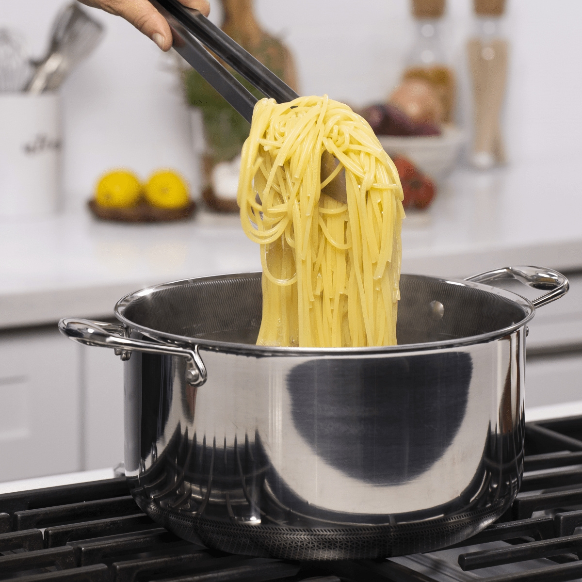 The 7.6L Hexclad Hybrid Casserole with Lid is the big pot for serious kitchen tasks - perfect when you're cooking stews, soups, slow-cooked meals, large meat dishes or generous batches for family and friends. With its generous volume, it gives you the freedom to go all-in on flavor, heat and quantity.