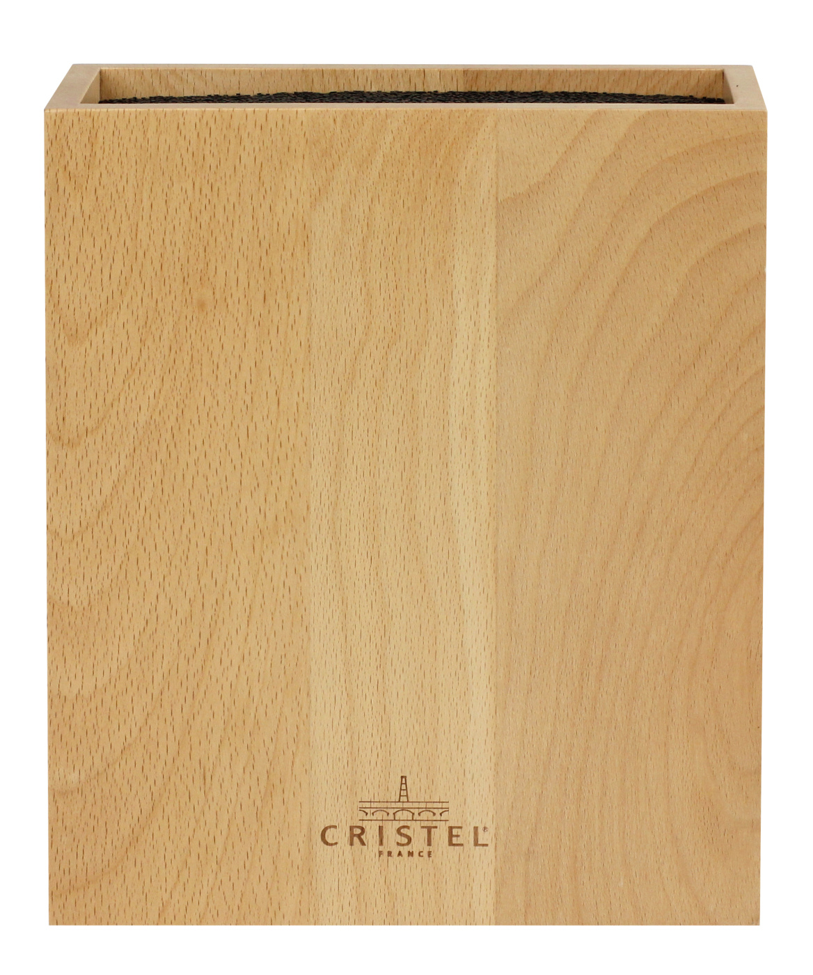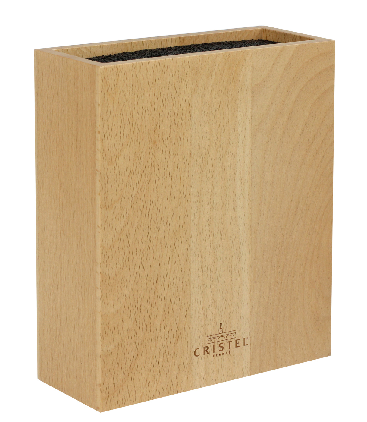 Rectangular knife block of classic cut made of solid beech wood. Instead of finished grooves, it is full of polypropylene spaghetti that allows you to set the knives how you want. The inner blade can be removed for cleaning. 9.5 cm wide and holds up to 8 knives.