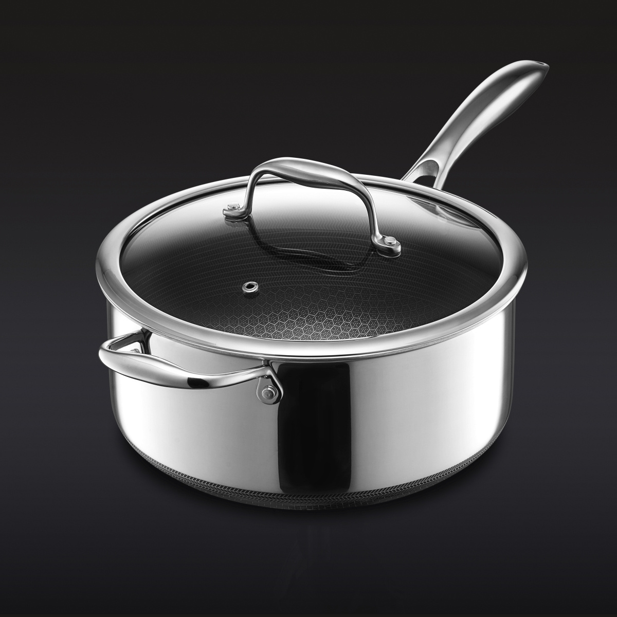 - Hybrid construction: stainless steel + aluminum core for fast and even heat distribution