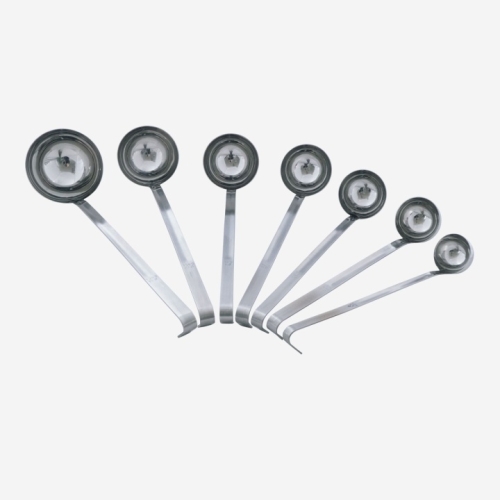 Heavy duty loopsMaterial = Stainless Steel n 50923 = Ø6,5 cm , Volume 7cl , Length Handle 31cm n 50924 = Ø8 cm , Volume 12,5cl , Length Handle 34cm n 50925 = Ø9 cm , Volume 20cl , Length Handle 36cm n 50926 = Ø10 cm , Volume 25cl , Length Handle 38cm n 50927 = Ø11 cm , Volume 30cl , Length Handle 38cm n 50928 = Ø12 cm , Volume 45cl , Length Handle 42cm n 50929 = Ø14 cm , Volume 67cl , Length Handle 42cm n 50930 = Ø16 cm , Volume 100cl, Length Handle 47cm