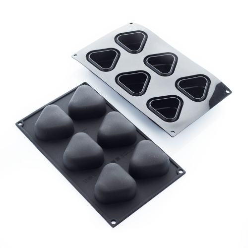 From Martellato's range of black silicone baking moulds that are a little more stylish, a little more luxurious and a little more modern, we present Triangle that gives you triangles. The moulds have a nice curve and make pastries that are super nice to pour ice cream over. The pastries measure 71.5x67 mm and are 35.5mm high (volume 104ml). The size of the mould is 297x176mm. Each mould has room to cast six pieces. withstands temperatures between -60°C and +230°C.