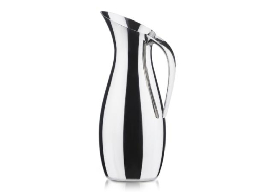 Exclusive polished steel jug in a stylish and modern design. The top is equipped with a removable ice filter, which prevents ice cubes and any lime or lemon pieces from coming out when pouring. Made of 18/8 steel. Height 30 cm and a diameter of 12 cm.