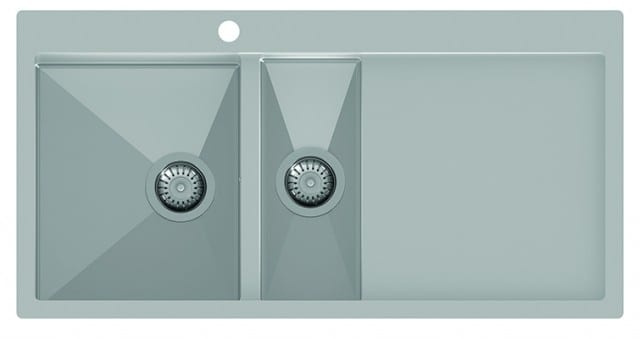 Double stainless steel sink 1000 x 510 mm with storage area on the right to be folded into the countertop.