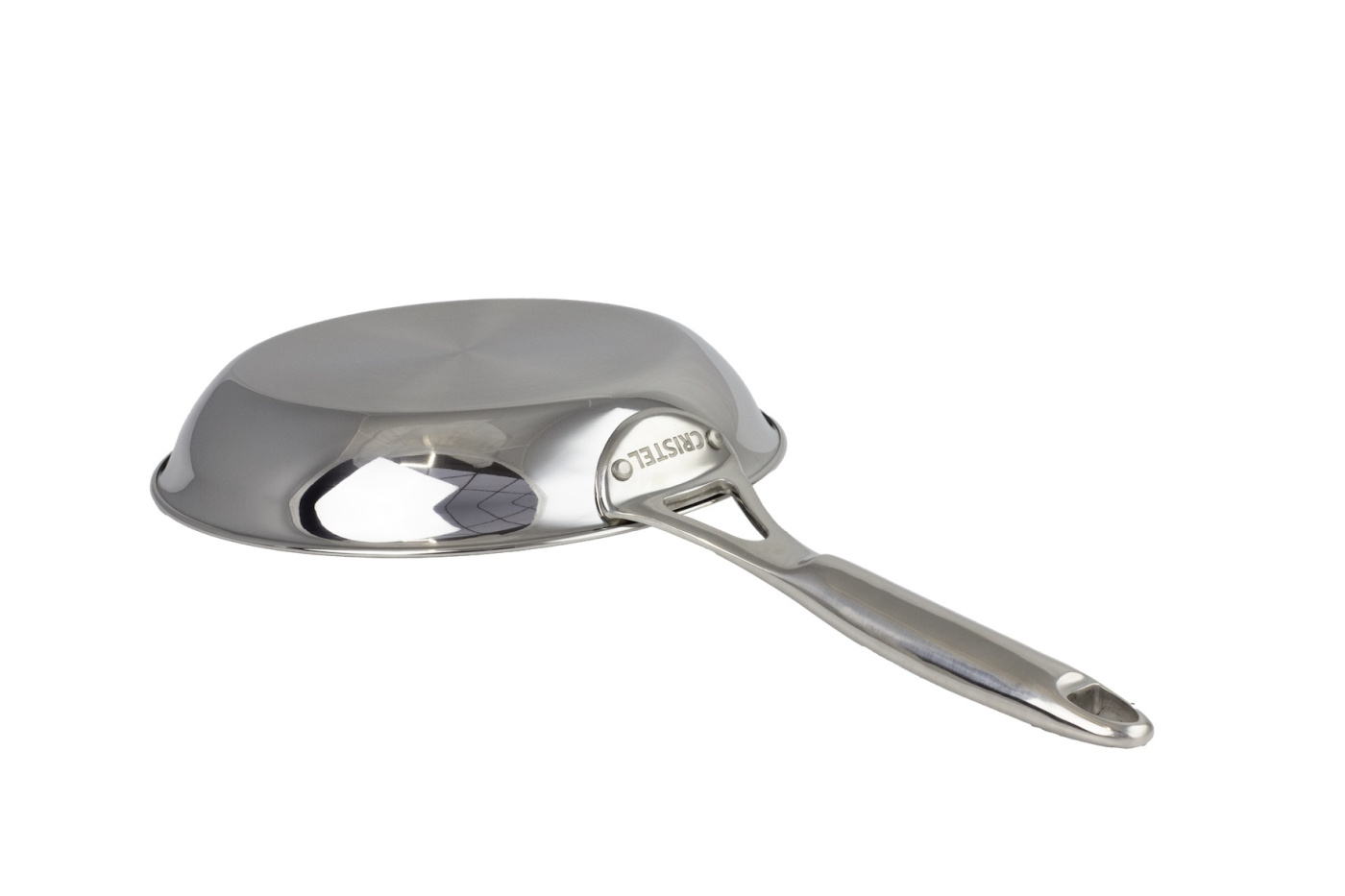 Cristel's latest addition to the CastelPro range is a five-layer stainless steel frying pan with incredibly high response and reaction. Unlike other stainless steel pans that use either a thick sandwich bottom or thick material to retain heat for even cooking, here you get a lightning-fast response to the temperature changes on the plate.