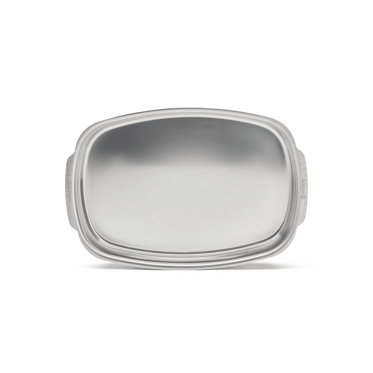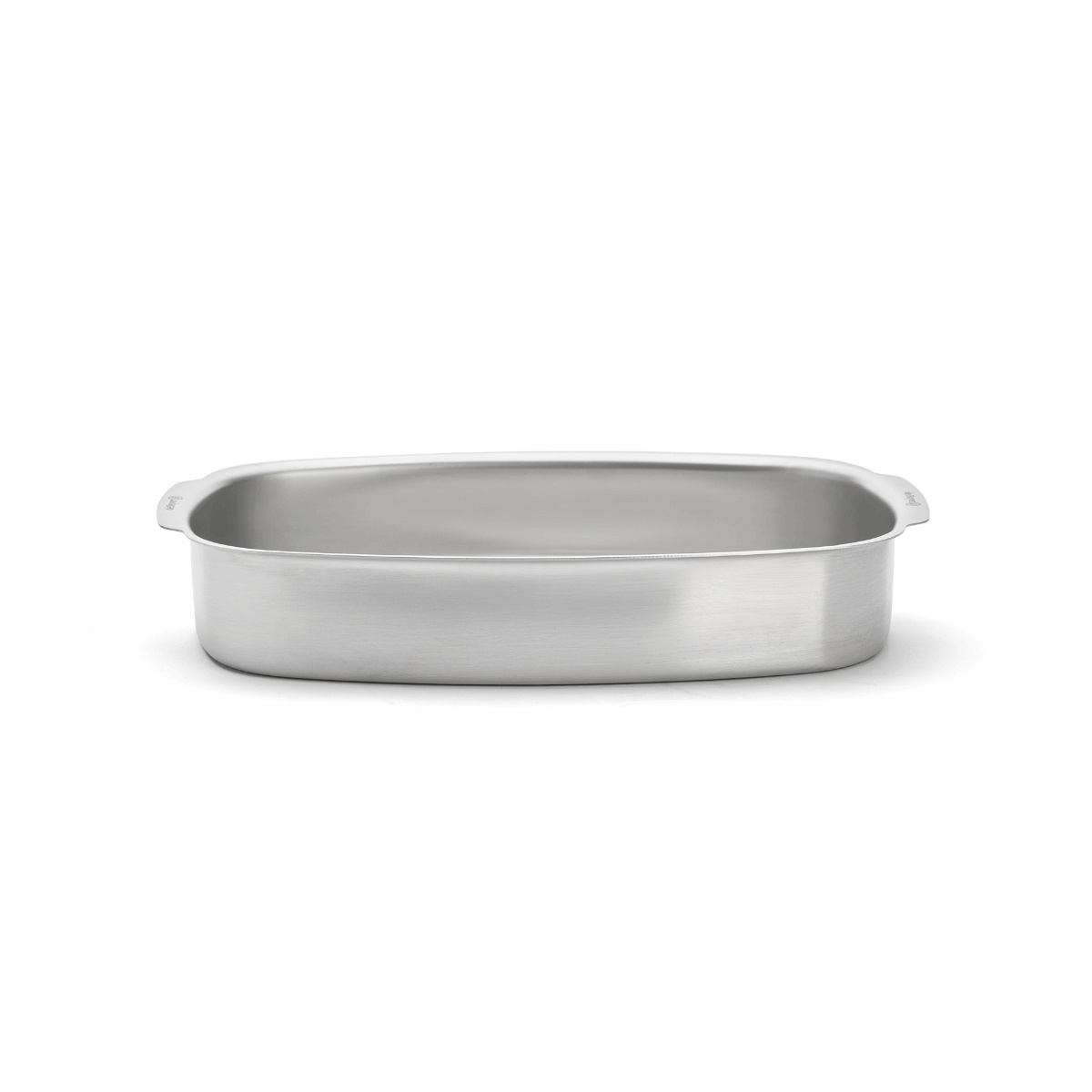 Sturdy and tasty stainless steel oven dish for various pastries and gratins. The format is as small as it can be to still fit in all home ovens.