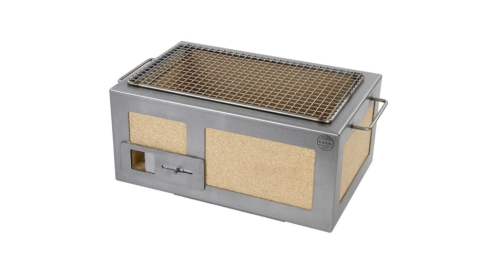 "A really solid version of a table grill or conro grill that is suitable for restaurant kitchens or the conscious home cook. Those of us who are already hooked on the table grill concept use it as a complement to sous vide to get the grilled surface on the already perfectly cooked meat, or for smaller cuts, vegetables or skewers. With its thick walls, the heat is reflected inwards instead of escaping sideways and all the temperature rises straight up. Together with a really compact charcoal, you'll get to incredible temperatures without any noticeable smoke. It's important to note, however, that all combustion converts oxygen into carbon monoxide, so grilling falls into the same category as BMX, snowball fights and James Cook's second voyage around the world, i.e. outdoor activities. With the food so close to the bed of embers, the liquids drip down into the coals and instantly vaporize into a cloud of deliciousness, infusing the food with even more deliciousness. The construction is also reinforced with a stainless steel frame, making it a more stable construction than other similar table grills. The sturdy grill grate also has small recessed spikes in each corner, so it stays firmly in place even when you're poking with your incredibly flexible De Buyer tweezers. The grill is 40 x 26cm large and 21cm high. The grill surface is 37 x 23cm and suitable for 2-4 people.