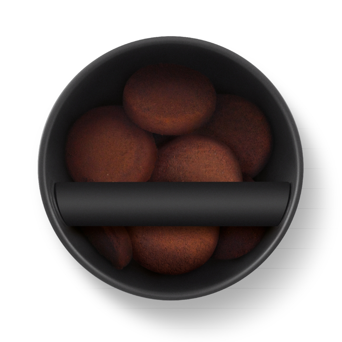 Very flexible knock box in a stylish and discreet design. The stick can be removed for easy cleaning and the bottom is made of stable rubber for good grip on the countertop. Holds about ten pucks of espresso.