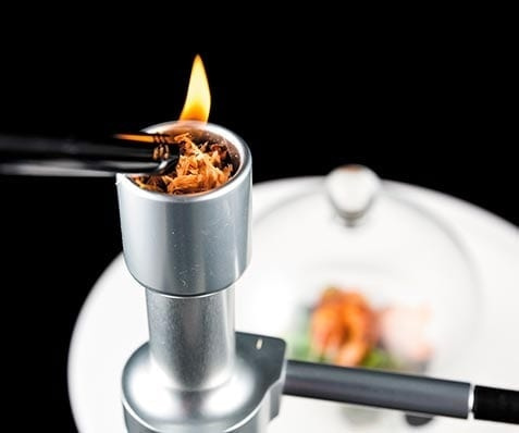 Place the foods you want to smoke in a sealed container or bag and blow in smoke from your gun. Create smoke-flavored emulsions by directing the smoke into a siphon along with the emulsion (such as mayonnaise), or directly into a liquid. Liquids are good carriers of smoke flavor, but we recommend that those who want to use smoke guns to flavor meat, fish or vegetables first slice them so that the surface area exposed to the smoke is as large as possible.
