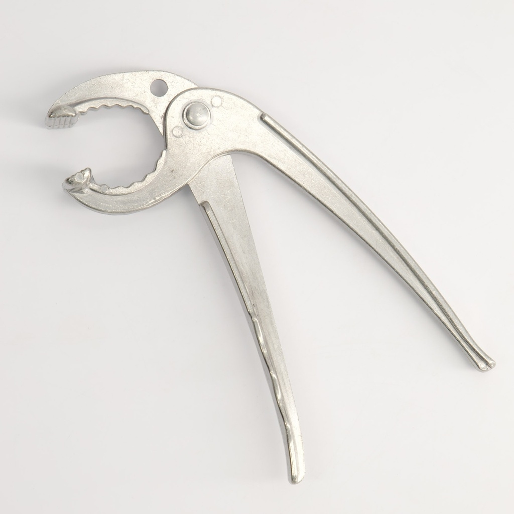 This metal model is built to grip firmly around the rim of a dolsot or other hot serving bowl without damaging the surface or slipping. It is used in Korean and Japanese kitchens to lift dishes from the stove to the table while they are still sizzling.