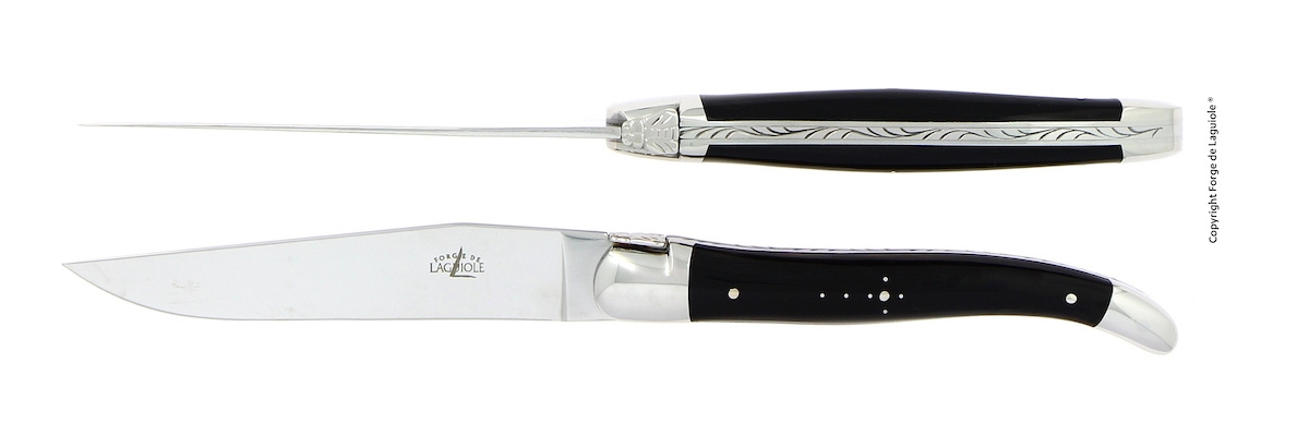 Two knives, Dark Horn handle, polished, Tradition - Forge de Laguiole