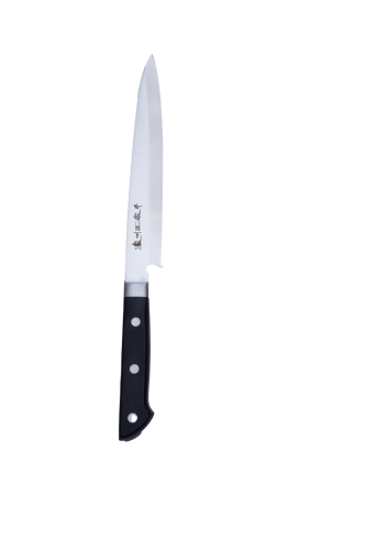 Yanagiba is a sashimi knife or slicer knife, perfect for sliding through the side of a fish. Since it is single-edged, that is, one side of the edge is completely straight and the other side is sharpened, it only works for right-handed people and becomes really sharp as it gets half the angle compared to other knives Pro House is made of a layer of MV steel that is riveted to the handle with three rivets. The handle is made of pakka wood which is a composite of wood fiber and epoxy that is compact and water resistant. The knife is easy to sharpen and keeps its sharpness well...