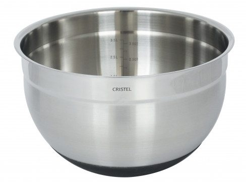 Bol à mélanger en acier inoxydable 18/10 avec base en silicone pour éviter les déversements accidentels. Gradué à l'intérieur. Disponible en deux tailles, 20 cm de diamètre ou 24 cm de diamètre.