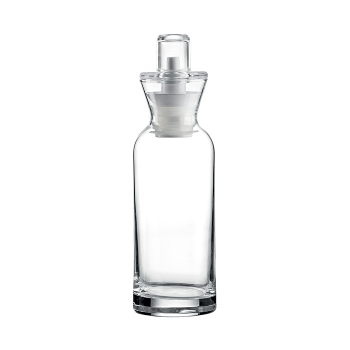 Une bouteille d'huile ou de vinaigrette en verre légèrement plus élégante. Elle est aussi belle sur le banc près de la cuisinière que sur la table à manger au moment de servir et fonctionne aussi bien pour la vinaigrette que pour l'huile pure. Le bouchon anti-goutte garantit un dosage raisonnable et évite les débordements. 6 cm de diamètre, 20,5 cm de hauteur. Contient 250 ml et est fabriqué en Italie.