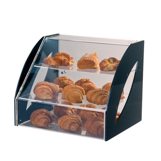 Petit comptoir à pâtisseries soigné et flexible pour ceux qui souhaitent agrémenter le petit-déjeuner à la maison, disposer d'une petite surface de service ou même transporter une serpillière à plat. Le présentoir est en plexiglas avec une façade arquée et trois étagères. Parfait pour les pâtisseries, les pralines et les snacks sucrés et salés. Fabriqué par Martellato en Italie, d'autres modèles plus grands sont disponibles sur demande.