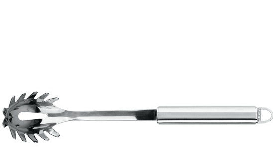 • Louche à spaghetti en acier inoxydable de la société française Cristel. Elle mesure 35,5 cm de long.