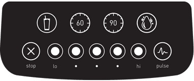Sur le panneau, vous trouverez des boutons clairs pour les 5 vitesses plus la fonction pulse, le bouton d'arrêt et quatre programmes préréglés : un pour le smoothie, un pour le nettoyage et deux fonctions temporisées qui vous permettent de laisser le blender en marche pendant qu'il s'occupe de lui-même.